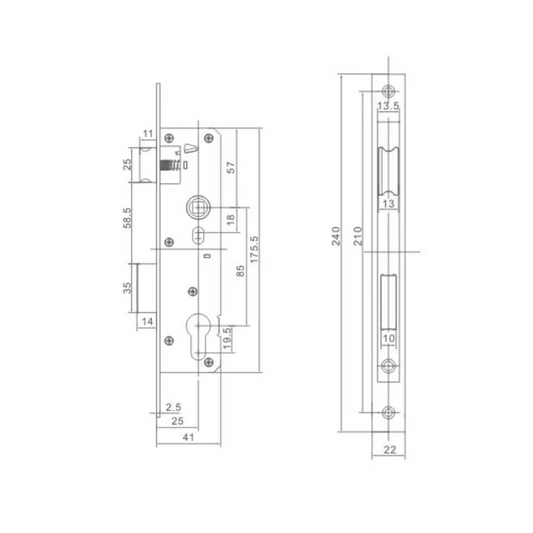 Cerradura Europerfil angosta con Cilíndro 70mm